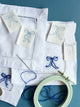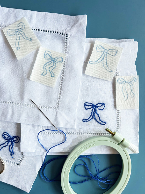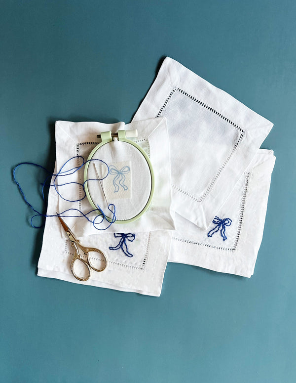This kit includes everything you need to embroider 4 linen cocktail napkins- no prior experience necessary! A relaxing DIY that makes for a charming gift or addition to your hosting supplies.