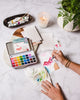 Paint your own watercolor citrus fruits with these outlines and paints. This kit is compact and portable- everything packaged together in a tin painting box. Just add water to the included water brush and you can paint anywhere!