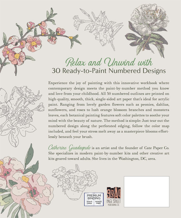 Experience the joy of painting with this innovative workbook where contemporary design meets the paint-by-number method you know and love from your childhood. All 30 numbered outlines are printed on high-quality, smooth, thick, single-sided art paper that’s ideal for acrylic paint. Ranging from lovely garden flowers such as peonies, dahlias, sunflowers, and roses to lush orange blossom branches and monstera leaves, each botanical painting features soft color palettes to soothe your mind with the beauty of nature. The method is simple: Just tear out the numbered design along the perforated edging, follow the color map included, and feel your stress melt away as a masterpiece blooms effortlessly beneath your brush.