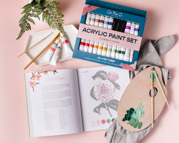 • Complete Artist Bundle includes: the book, a set of 24 acrylic paints that correspond with the book, 2 paintbrushes and palette